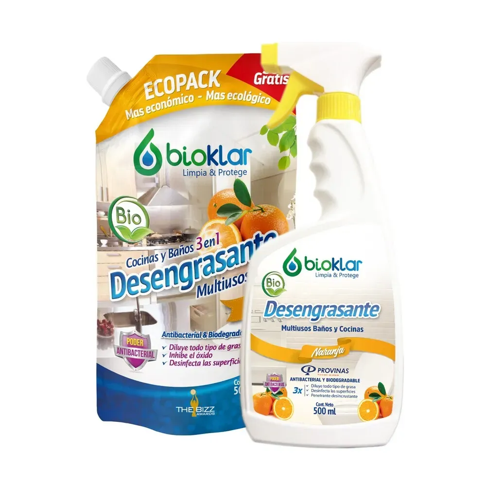 Desengrasante biodegradable con poder antibacterial. Elimina grasa de superficies metálicas como campanas extractoras, hornos, parrillas, lavaplatos, etc. Asi mismo funciona eficientemente en superficies como pisos de ceramica, paredes de azulejos, y distintas piedras como marmol, granito,...